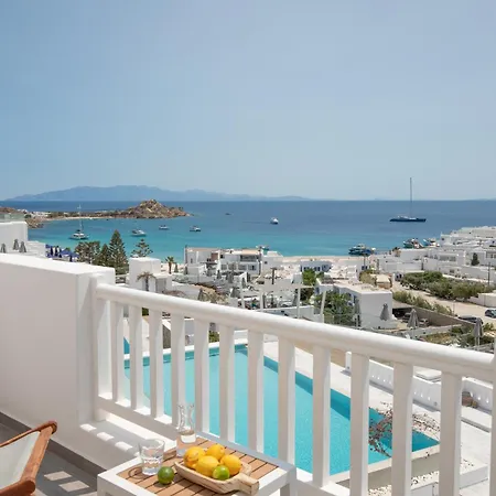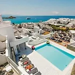 The exclusive The George Hotel Mykonos Platys Gialos, located approximately 7 km from Avenue of the Lions, offers a swimming pool, Wi-Fi in all hotel areas. The 4-star hotel features a beach bar and boasts a privileged location around 15 minutes' walk from Psarou.